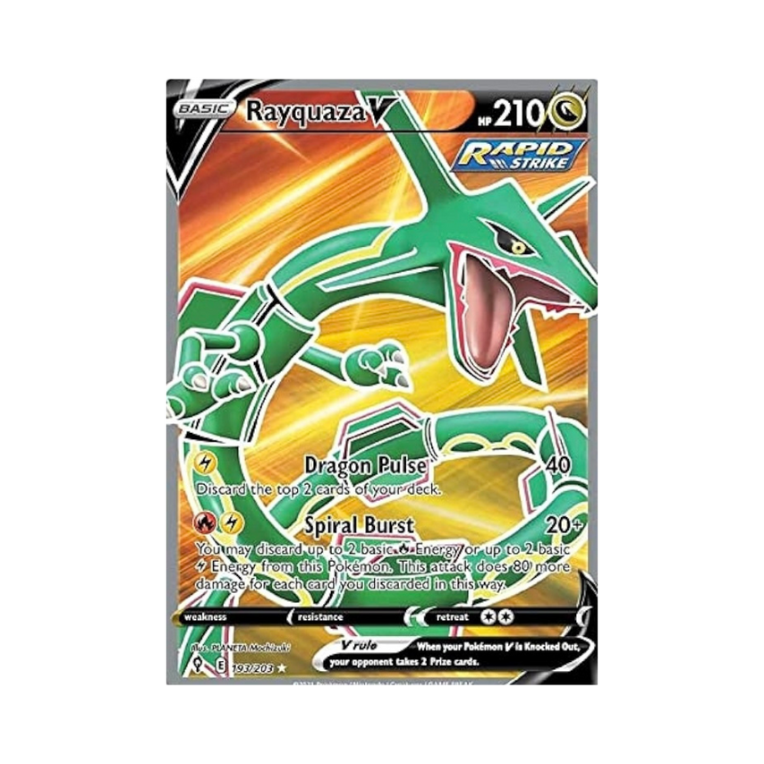 Explore the power and elegance of Rayquaza V – EVS 193 from the Evolving Skies expansion, now available as a premium single.